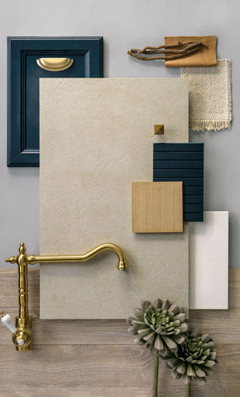 Ein creme-beiger Hintergrund, der die Struktur verwitterten Steins in die Balance bringt und die Oberfläche aus zarten Schichten in natürlichem und neutral getöntem warmen Beton entstehen lässt, um einen ultragroben Abschluss zu schaffen.