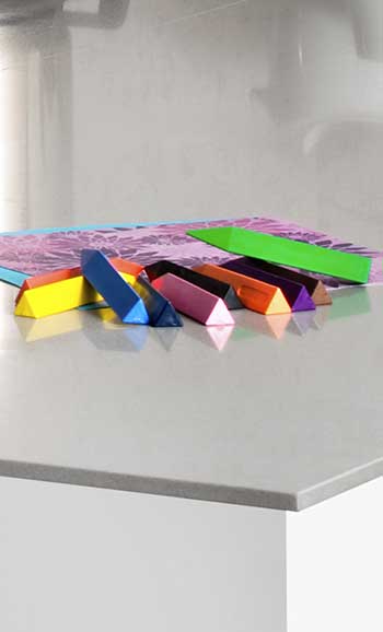 Eine Vielzahl von Kantenprofilen in Einzeldicke kann in Porzellanfarben erstellt werden. Diese Abschlussarten legen den Plattenkörper frei, der sich in Farbe und Design von der Plattenoberfläche unterscheidet.