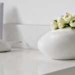 Eine saubere und erfrischende weiße Grundlage, besprenkelt mit winzigen grauen Körnern für einen Hauch von Wärme und Vielseitigkeit.