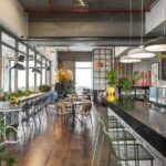 Dieser eklektische Raum mit einer Mischung aus Materialien, Farben und Elementen aus verschiedenen Inspirationen ist der perfekte Rahmen für einen massiven schwarzen Stein, der alles zu einem Ganzen zusammenfügt.