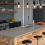 Industrielle Einwandküche mit Arbeitsplatten-Insel in Caesarstone 4003 Concrete | 1880