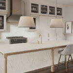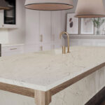 Landhaus-Einwandküche mit Insel in Caesarstone 531 Libretta | 8268 | 8269